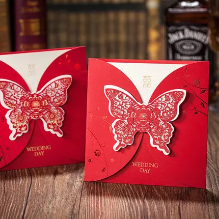 Asian Themed Red Color Double Happiness 3d Butterfly Wedding