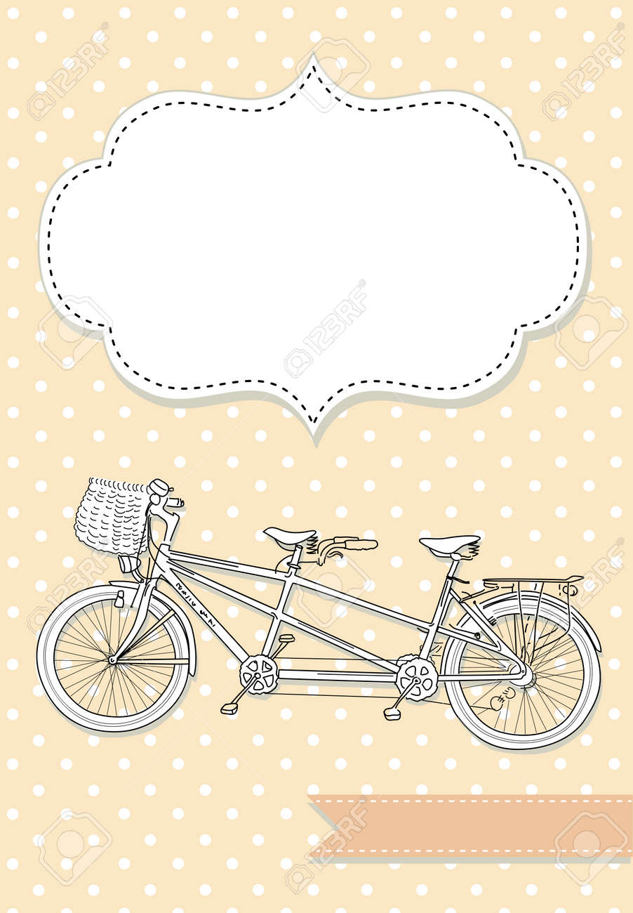 Tandem Bicycle Wedding Invitation With Polka Dot Background