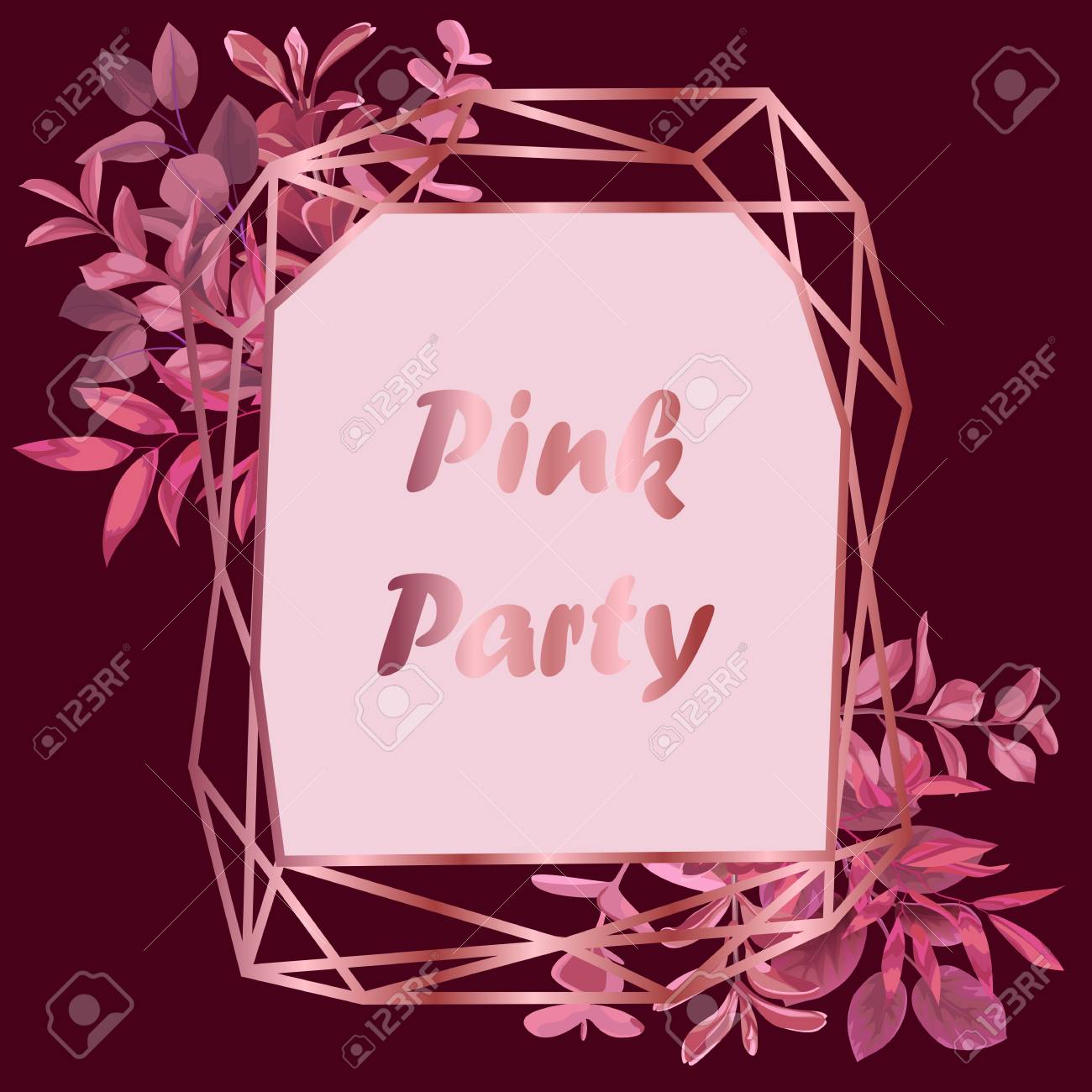 Pink Wedding Invitation Floral Card With Geometric Frame And