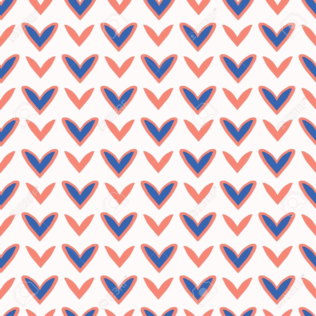 1950s Style Retro Love Heart Seamless Vector Pattern Hand Drawn