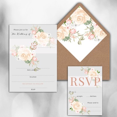 Pack Of 10 X Blank Ivory Pink Grey Rose Gold Print Wedding