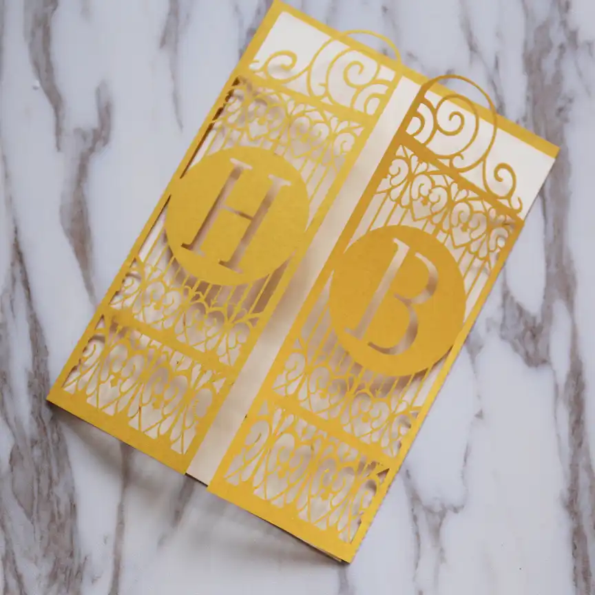 5x7 Inch 50pcs Gold Celtic Gate Laser Cut Wedding Invitation Great