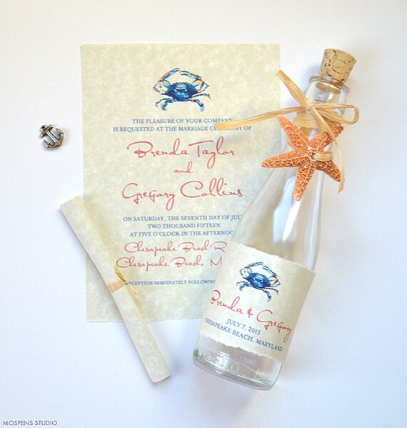Beach Wedding Invitations Destination Invitations Bottle Etsy