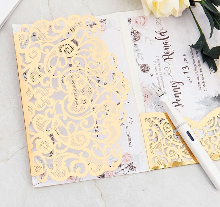 Greeting Cards Wedding Laser Cut Pocket Wedding Invitations Flower