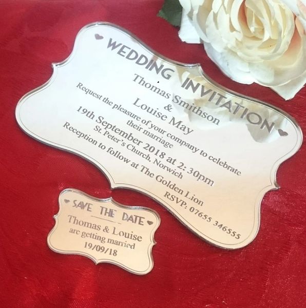 Engraved Gold Silver Acrylic Wedding Invitations Personalised