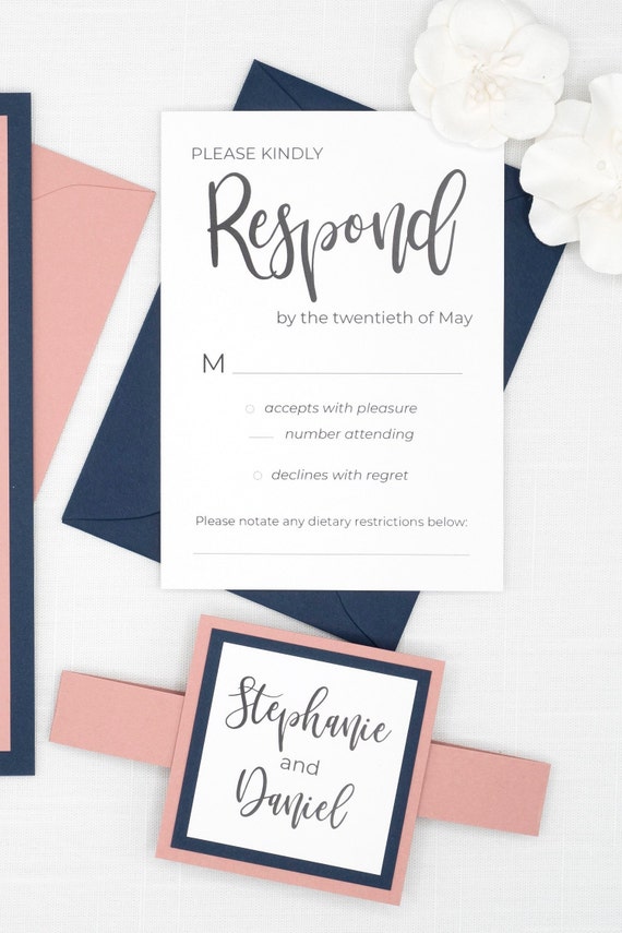 Navy And Dusty Rose Wedding Invitations Modern Calligraphy Etsy
