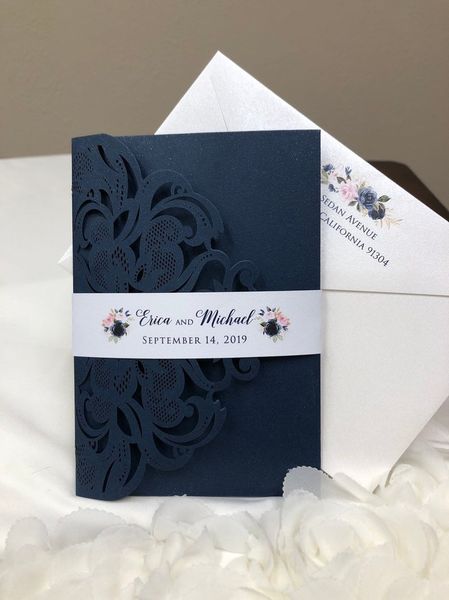 Dusty Rose Navy Blue Laser Cut Wedding Invitation Navy Floral