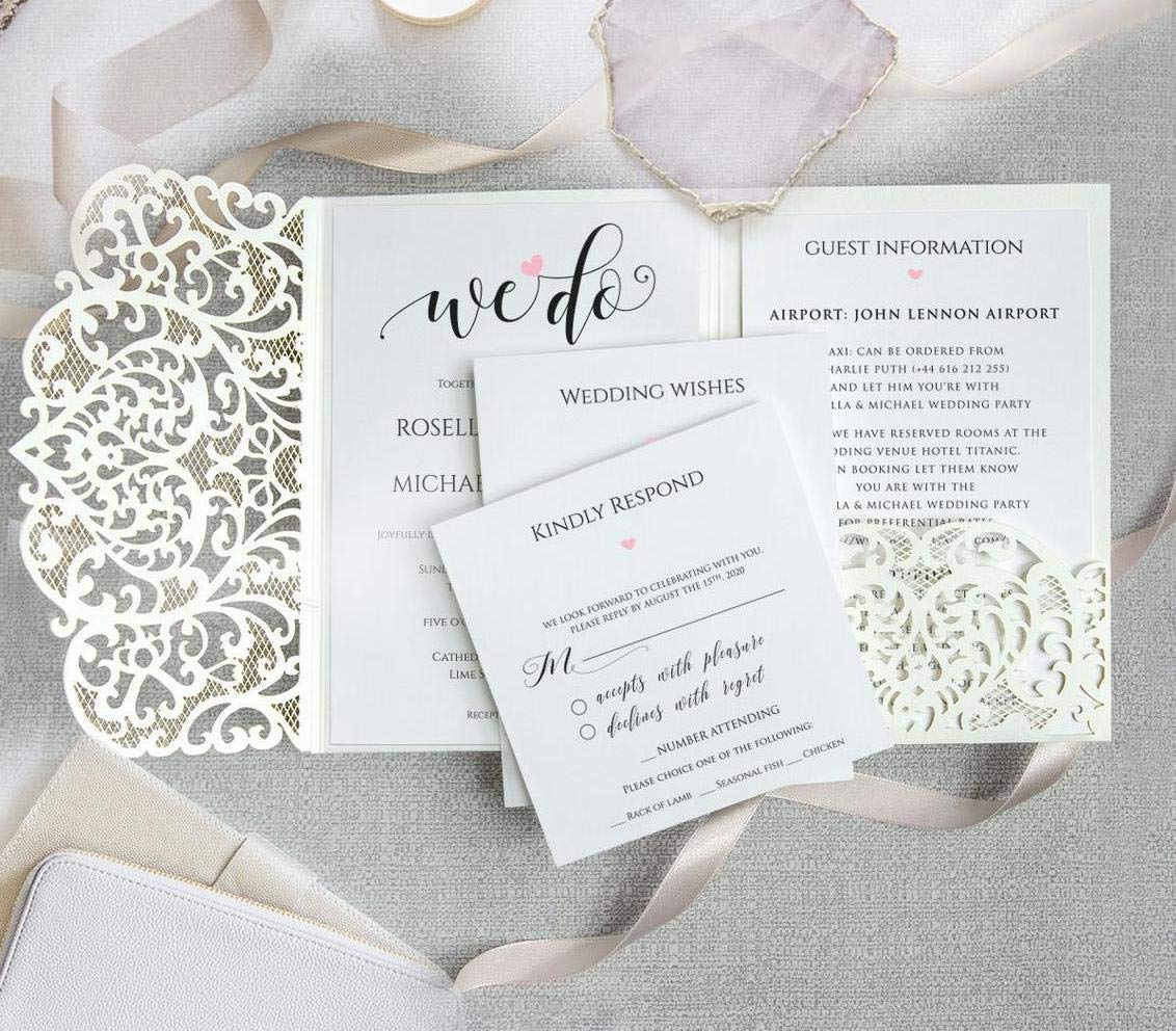 Amazon Com Ivory Wedding Invitations With Envelopes Elegant Lace