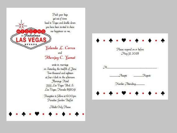 100 Personalized Custom Las Vegas Wedding Bridal Invitations Etsy