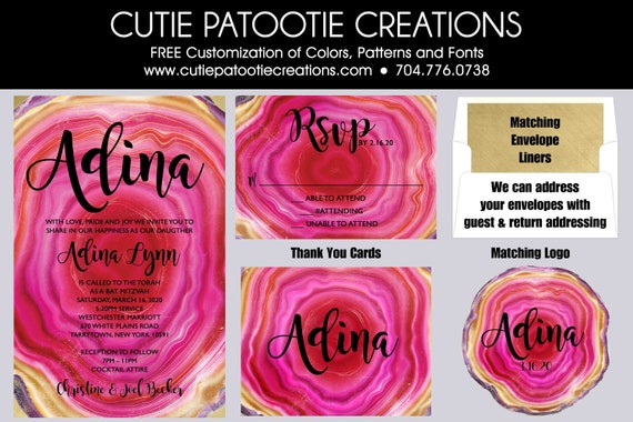 Pink Agate Bat Mitzvah Invitations Agate Wedding Invitation