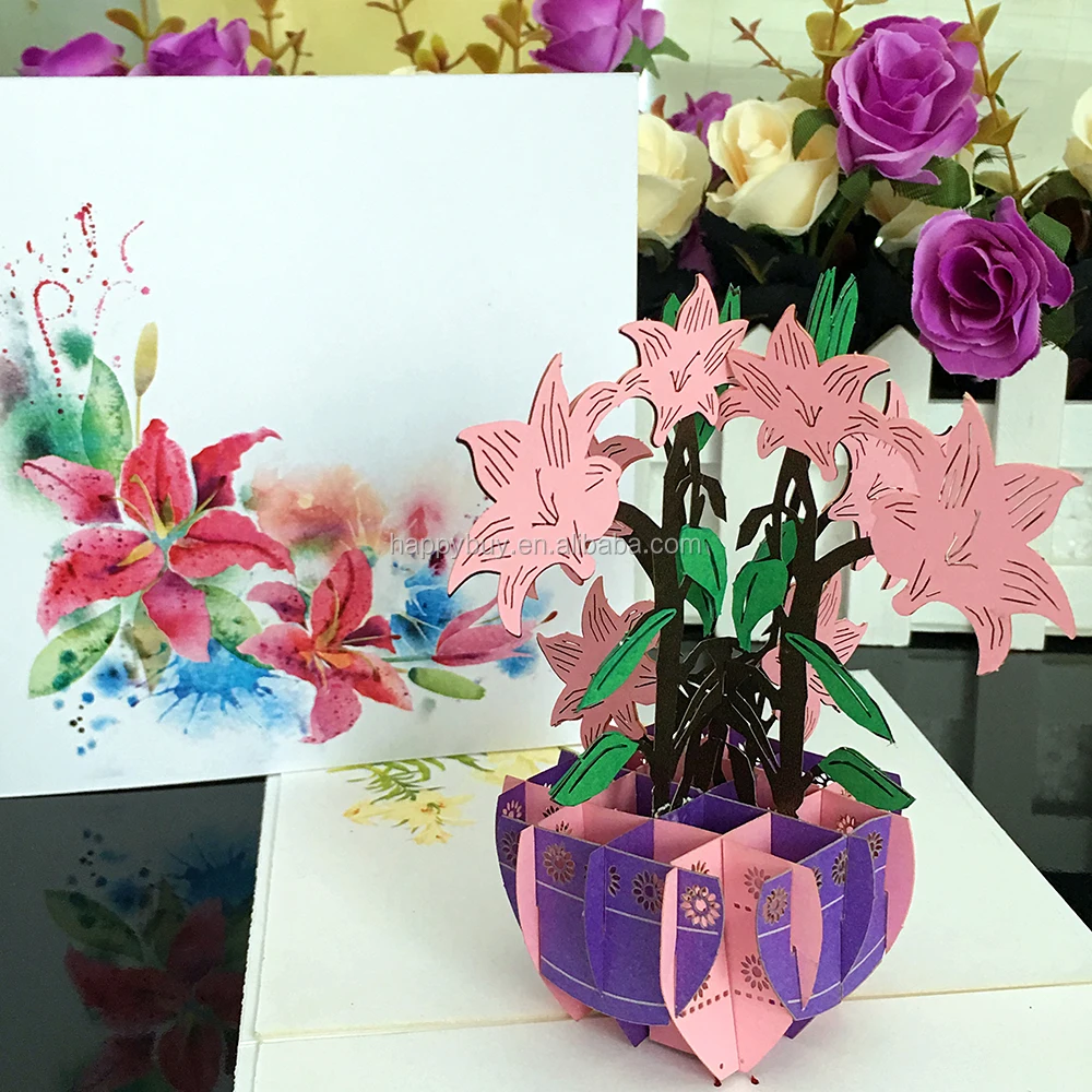Beautiful Perfume Lily Flowers 3d Pop Up Wedding Invitation Card