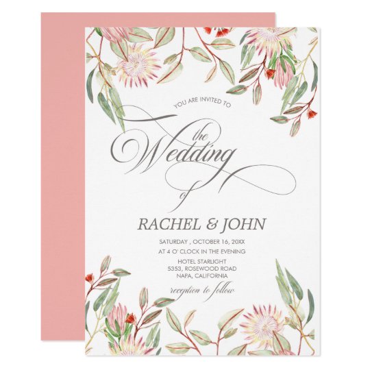 Australian Flowers Proteas Gum Leaves Wedding Invitation