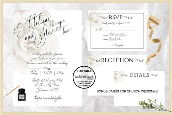 Editable Floral Wedding Invitation Template Magnolia Wedding Etsy