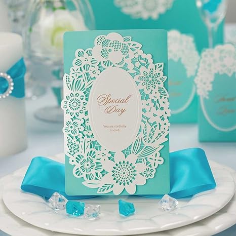 Amazon Com 1pcs Blue White Elegant Laser Cut Wedding Invitation