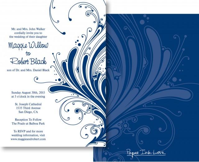 Navy Blue Wedding Invitation Template Wedding Invitation