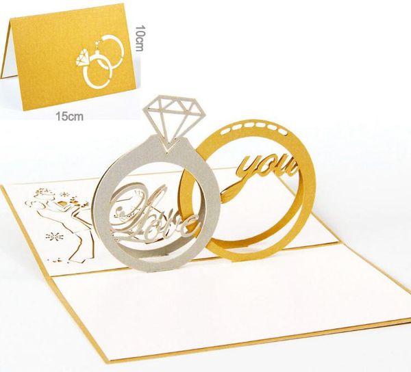 Hot Sale Gold Laser Cut 3d Ring Pop Up Wedding Invitations