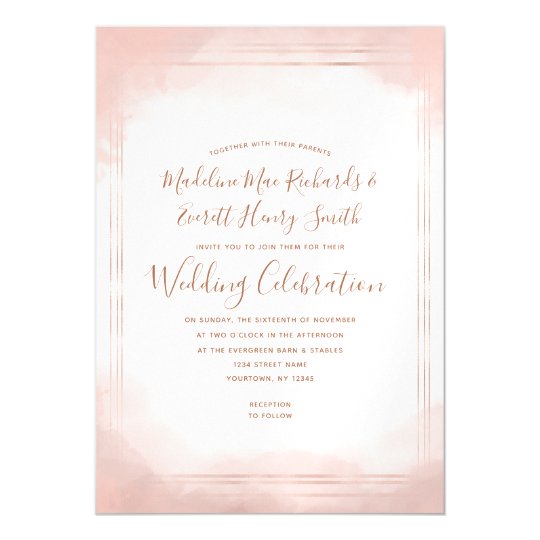 Blush Pink Rose Gold Wedding Invitation
