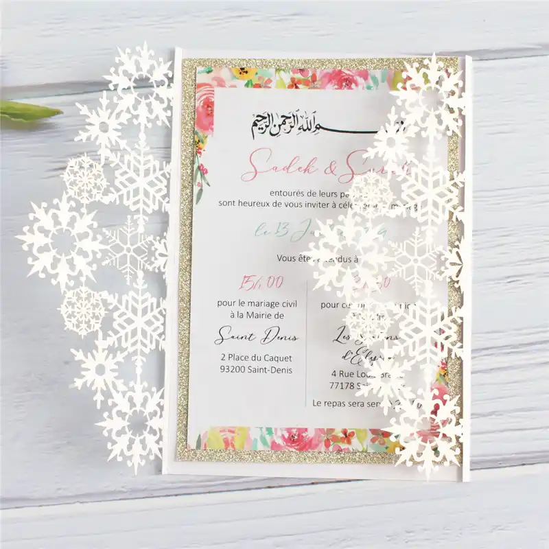 Winter Wedding Invitations Snowflake Elegant Party Supply