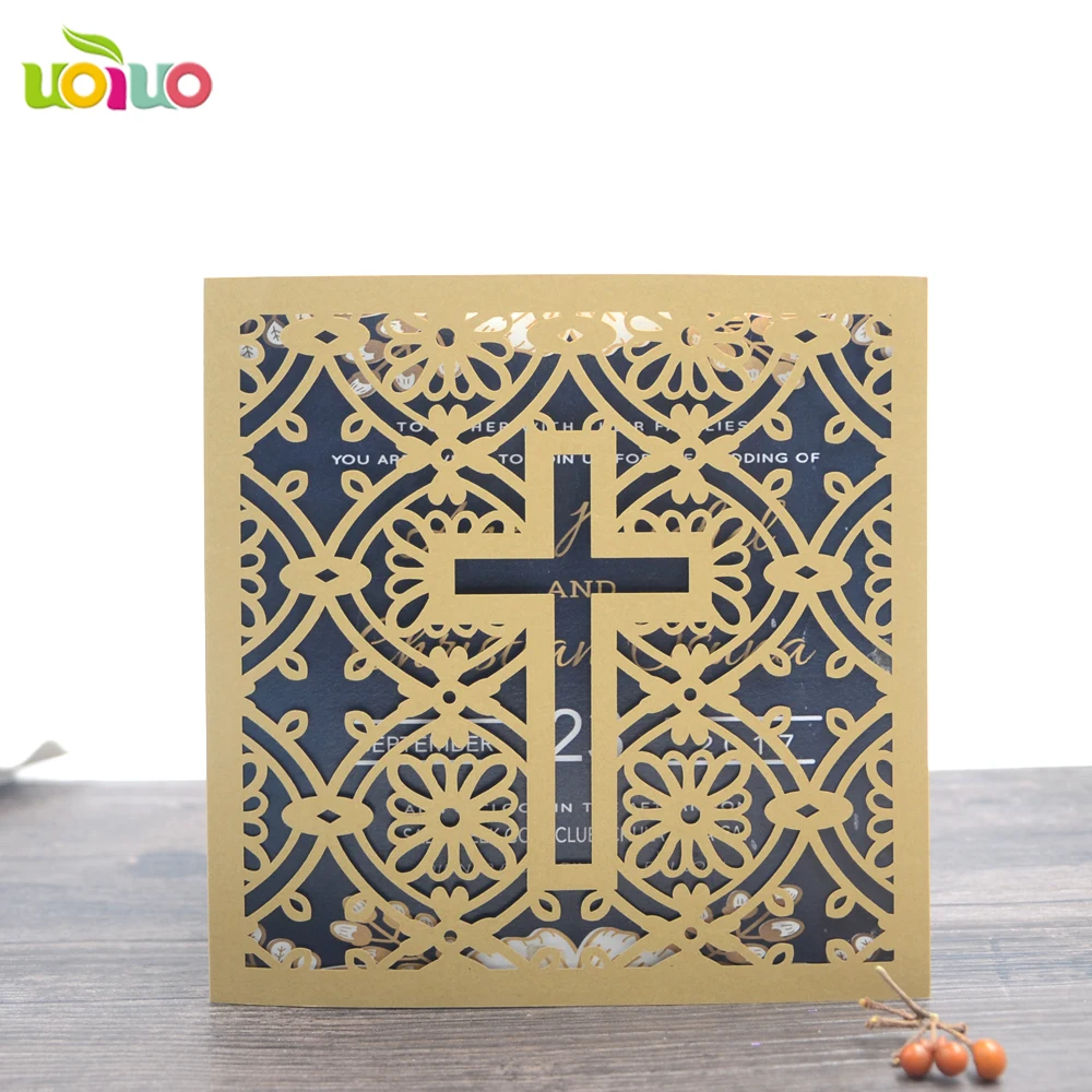 Paper Tamil Invitation Cards Laser Cut Crucifix Luxury Baptism