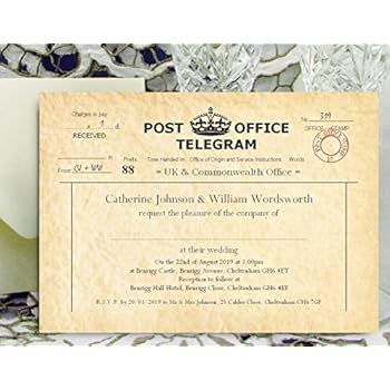 40 Personalised Large Wedding Invitations Vintage Telegram
