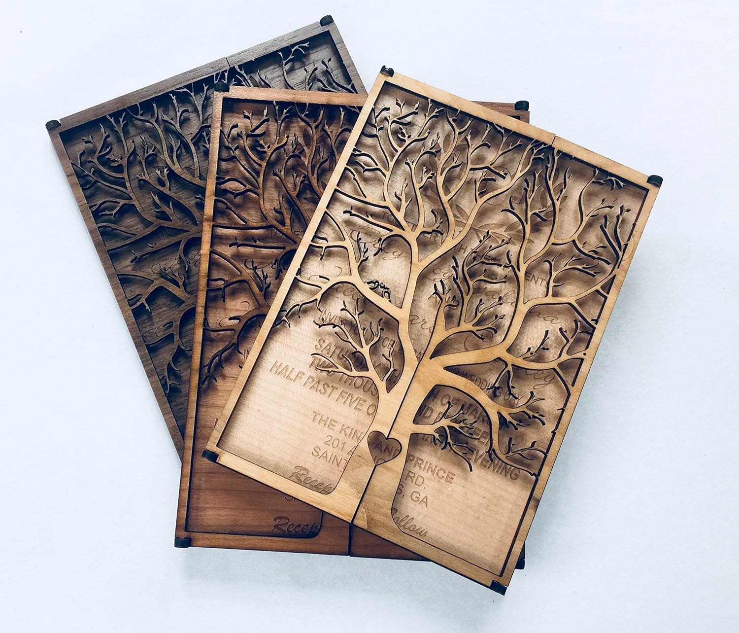 Luxury Tree Cutout Wedding Invitations With Wooden Cover