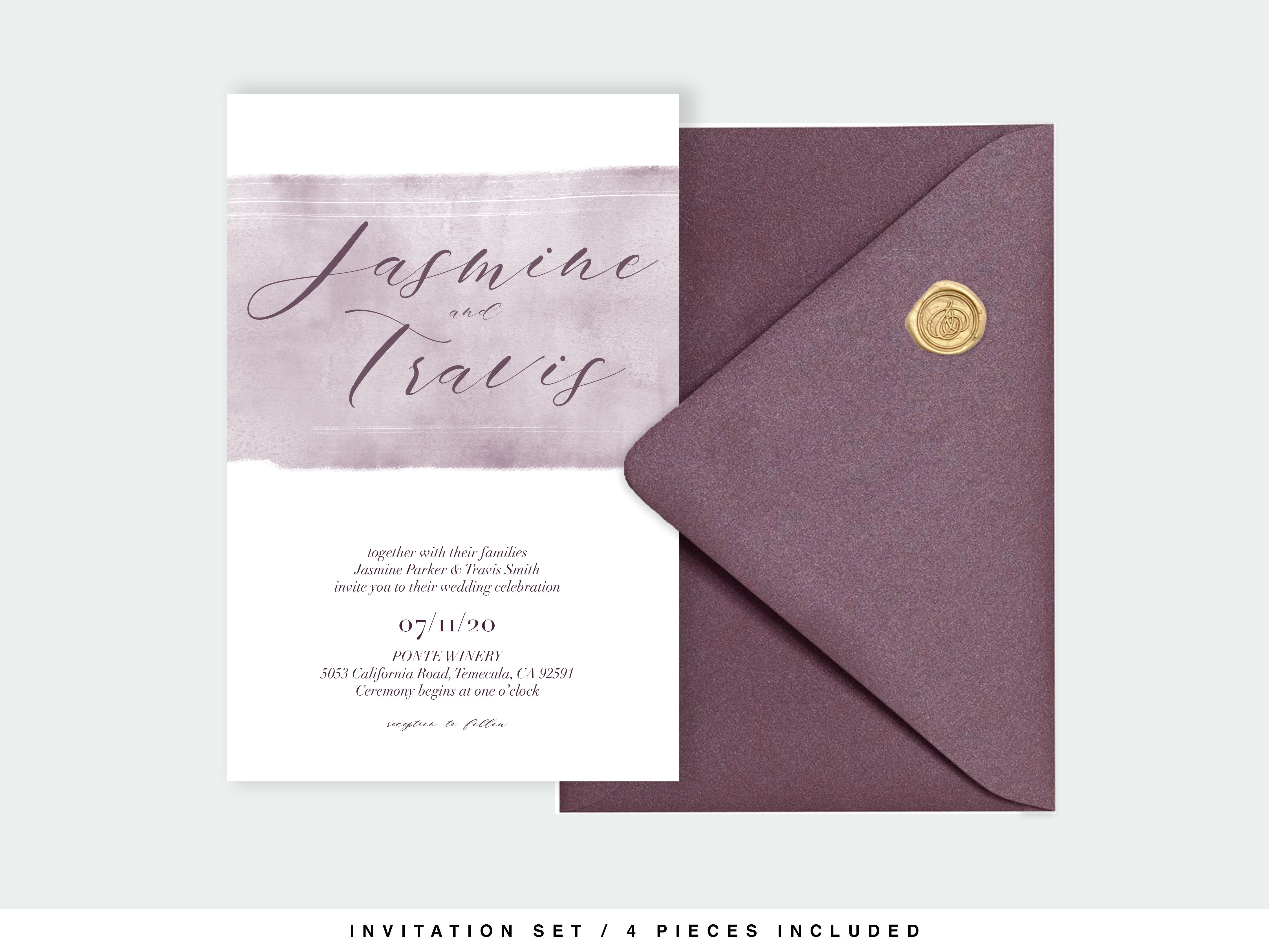 Purple Watercolor Wedding Invitation Suite Template