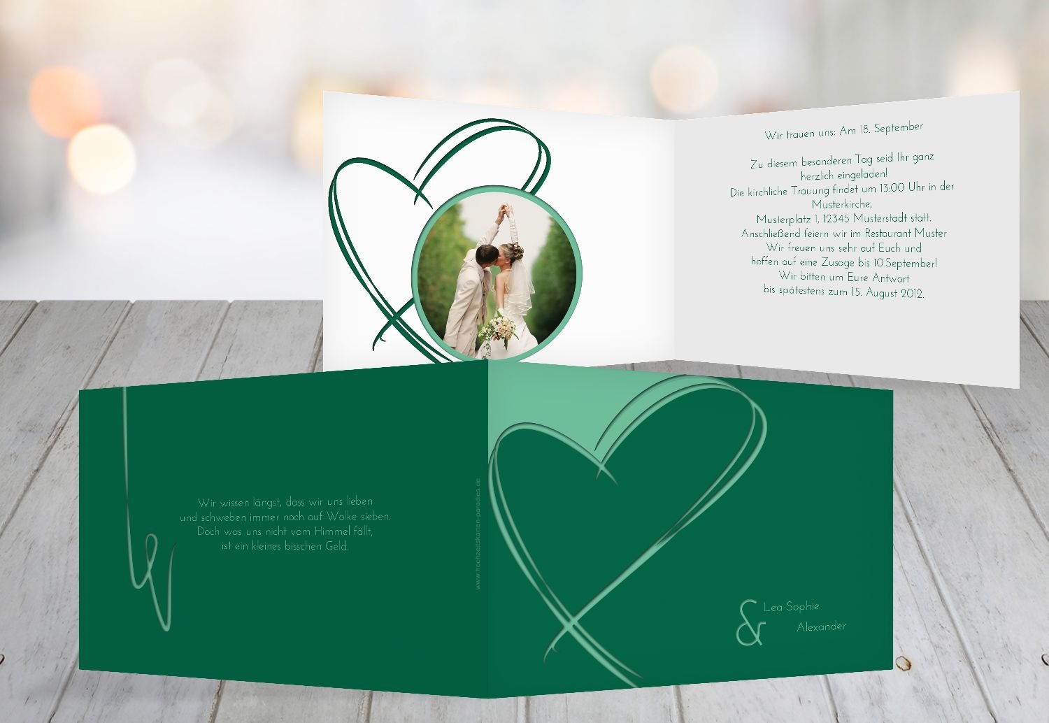 Double Heart Wedding Invitations Dark Green 10 Karten Amazon Co