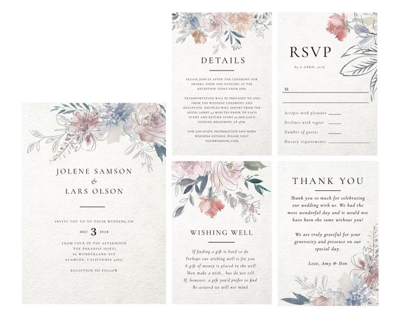 Boho Wedding Invitation Kit Floral Wedding Invitation Set Etsy