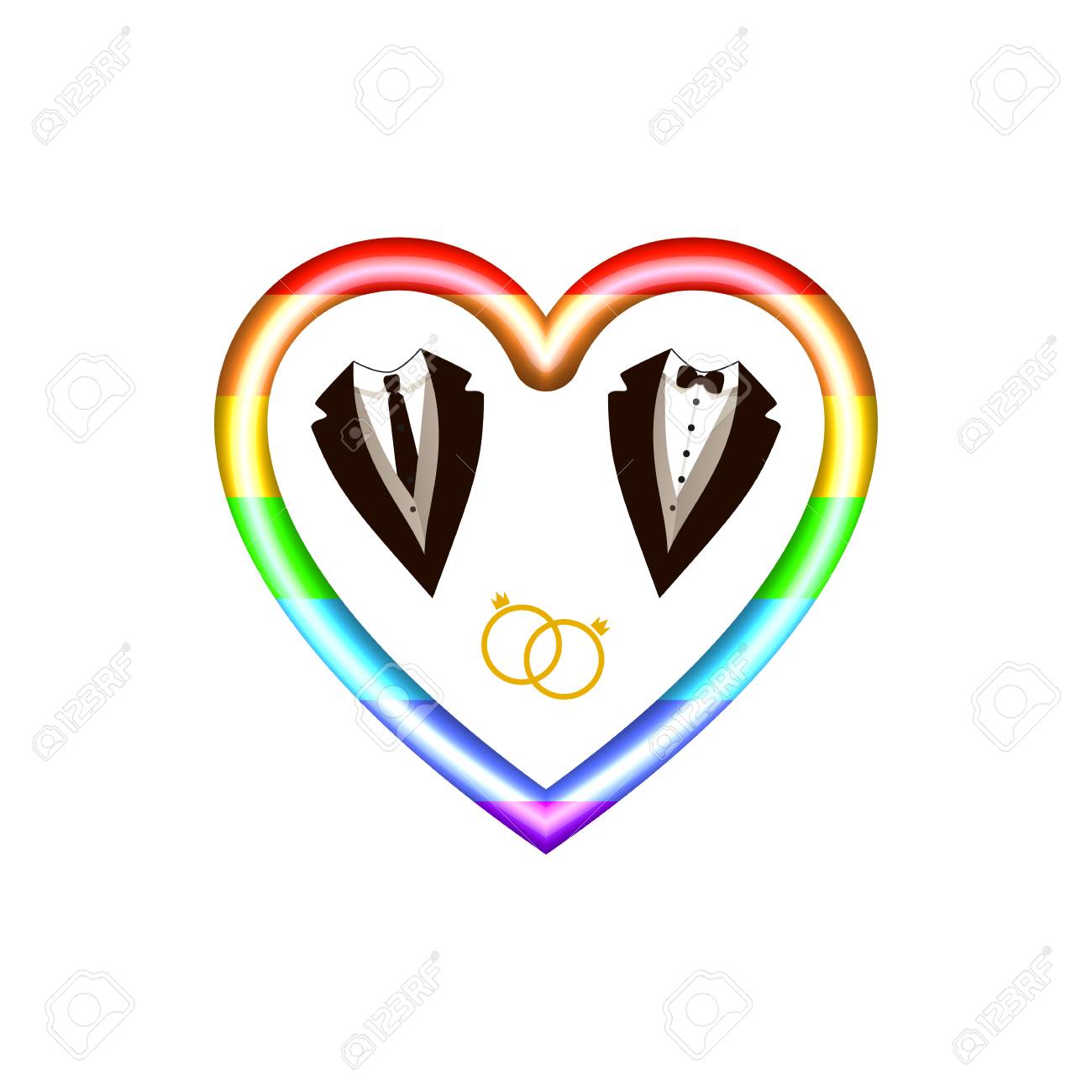 Vector Lgbt Icon Rainbow Colored Heart Rings And Male Suits
