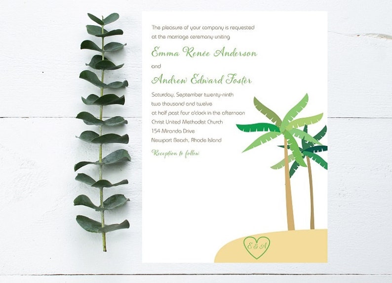 Palm Tree Beach Wedding Invitations Sample Etsy