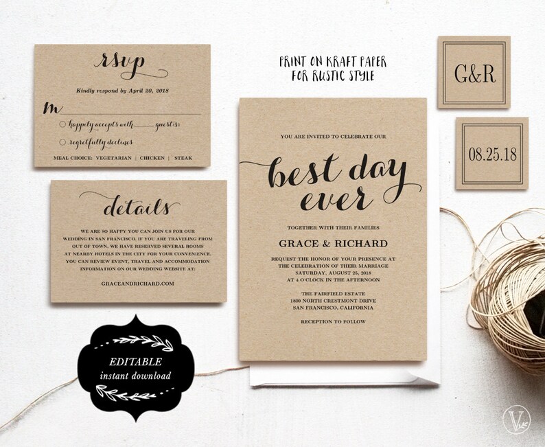 Printable Wedding Invitations Template Diy Kraft Wedding Etsy