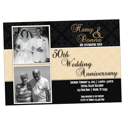 Amazon Com Then Now Black Gold Photo 50th Wedding Anniversary