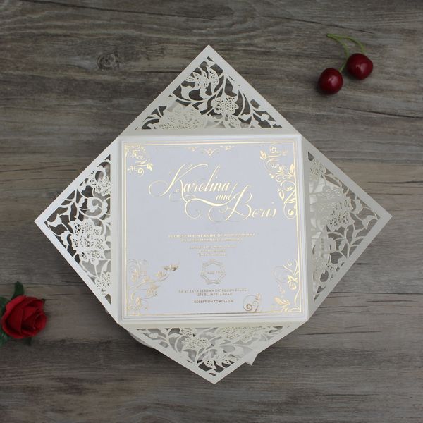 Gold Laser Cut Envelope Wedding Invitations Ewws024 As Low As