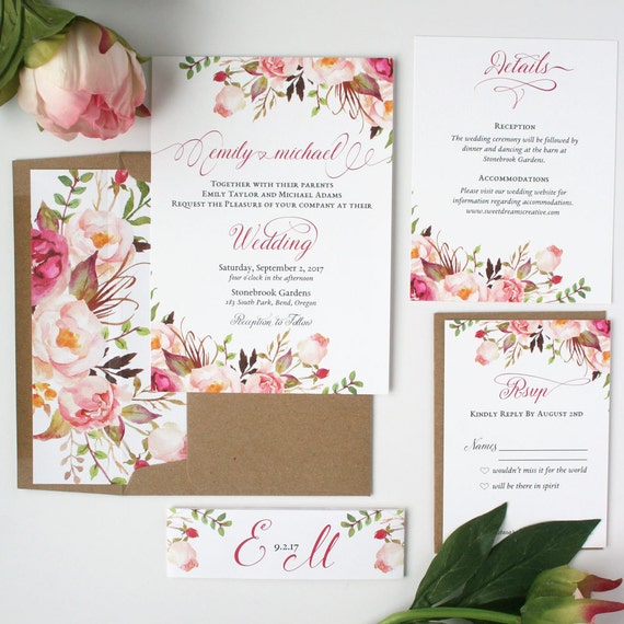 Floral Wedding Invitations Blush Pink Wedding Invitations Etsy