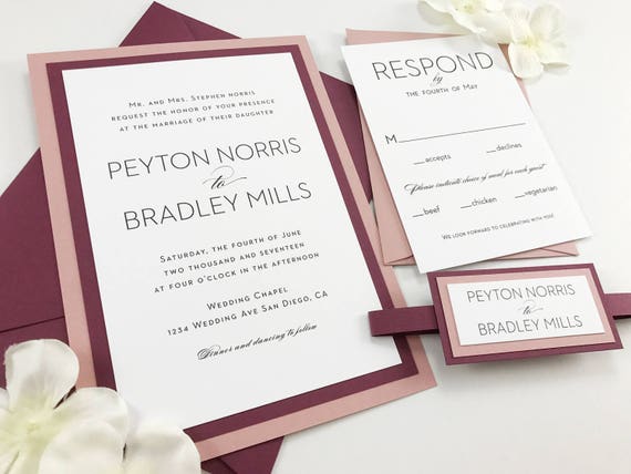 Modern Burgundy And Dusty Rose Wedding Invitation Set Full Etsy