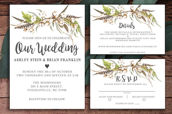 Wedding Invitation Garden Themed Cotton Rustic Printable Etsy