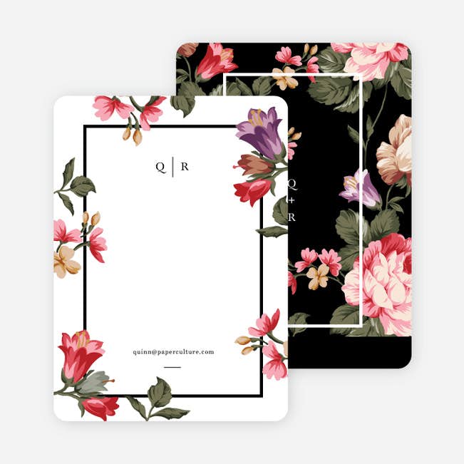 Elegant Garden Flowers Dark Themed Wedding Invitation Postcard