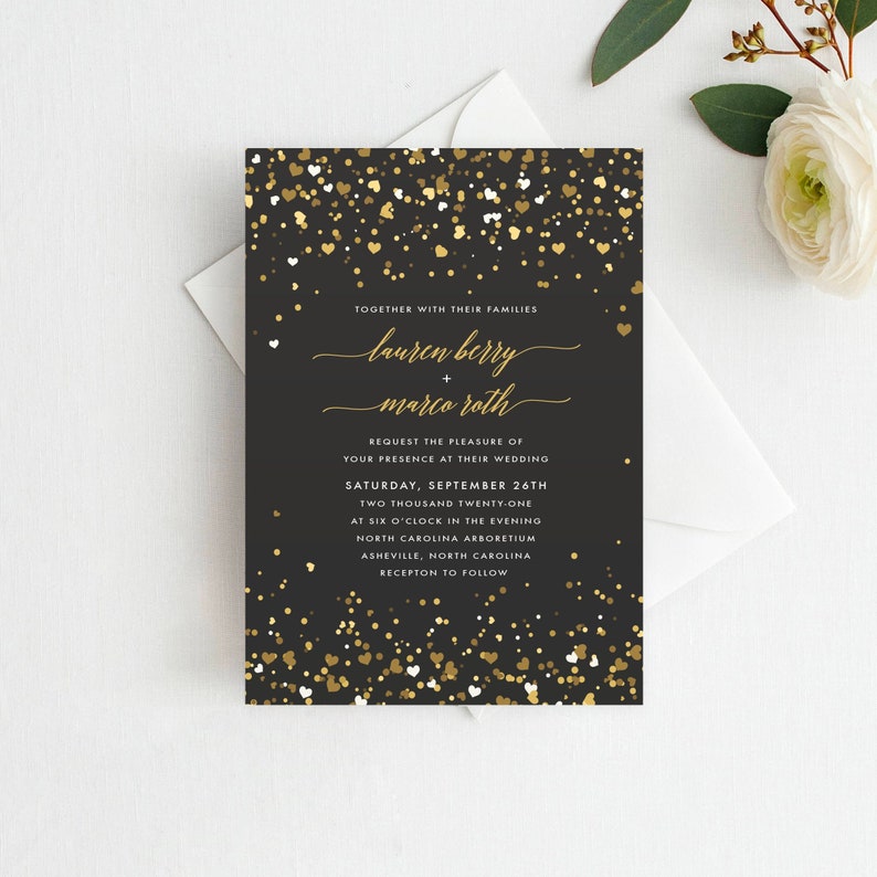 Confetti Wedding Invitations Gold Foil Look Invites Metallic