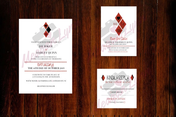 Harley Quinn Joker Wedding Invitation Set Digital Etsy
