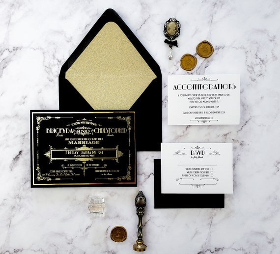Gatsby Wedding Invitation Sample Art Deco Laser Cut Wedding Etsy