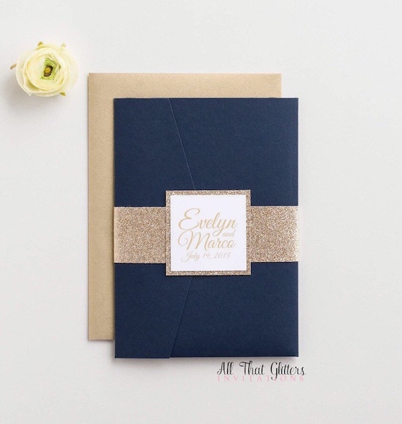 Glitter Wedding Invitation Navy And Gold Glitter Invitation Etsy