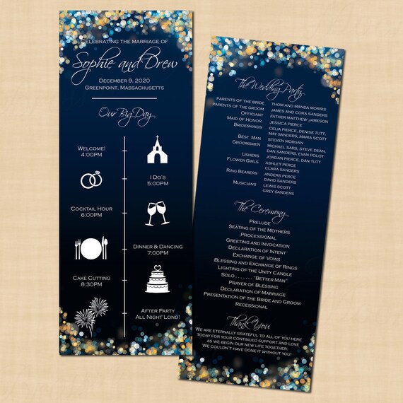 Midnight Blue And Gold Night Sky Wedding Itinerary Big Day Etsy