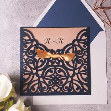Dark Blue And Mixed Metallics Wedding Invitation With Bronze