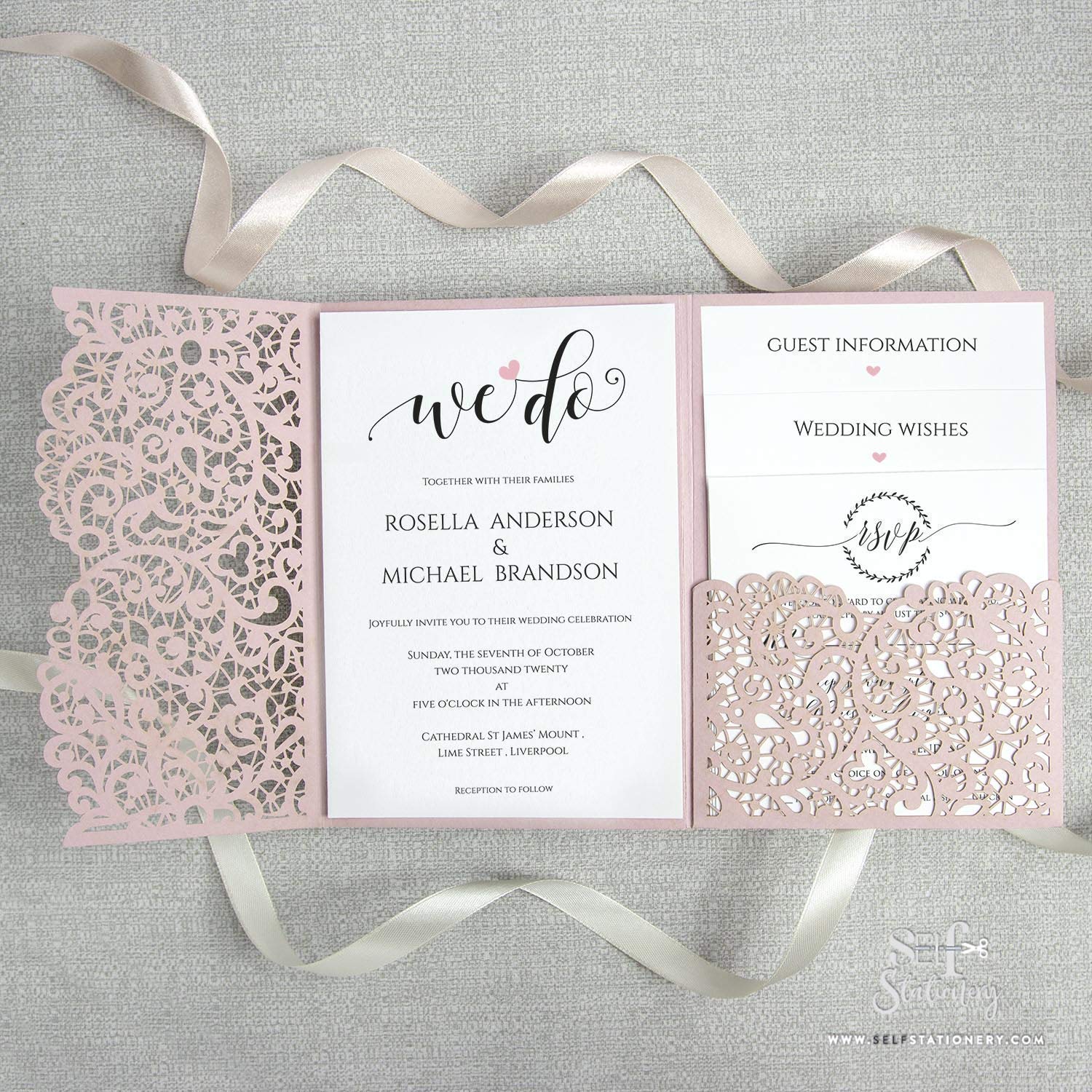 Sample Diy Set Laser Cut Misty Rose Blush Wedding Invitations With