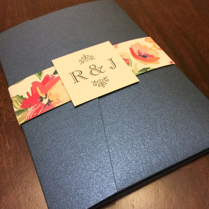 Sapphire Blue Coral Floral Wedding Invitation By Brown Fox