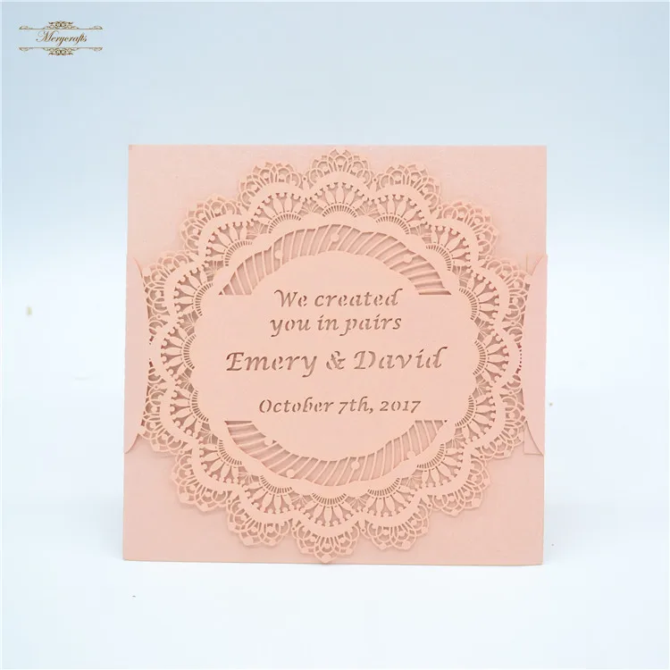 Glamorous Peach Color 15cm Laser Cut Unique Wedding Invitation