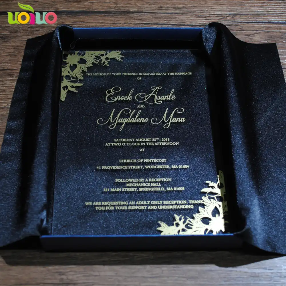 Simple Luxury Printed Lace Flower Wedding Invitation Card Acrylic