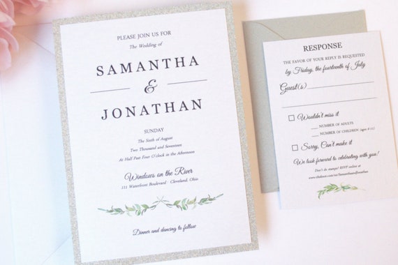 Greenery Wedding Invitation Set Invite Card Simple Silver Etsy