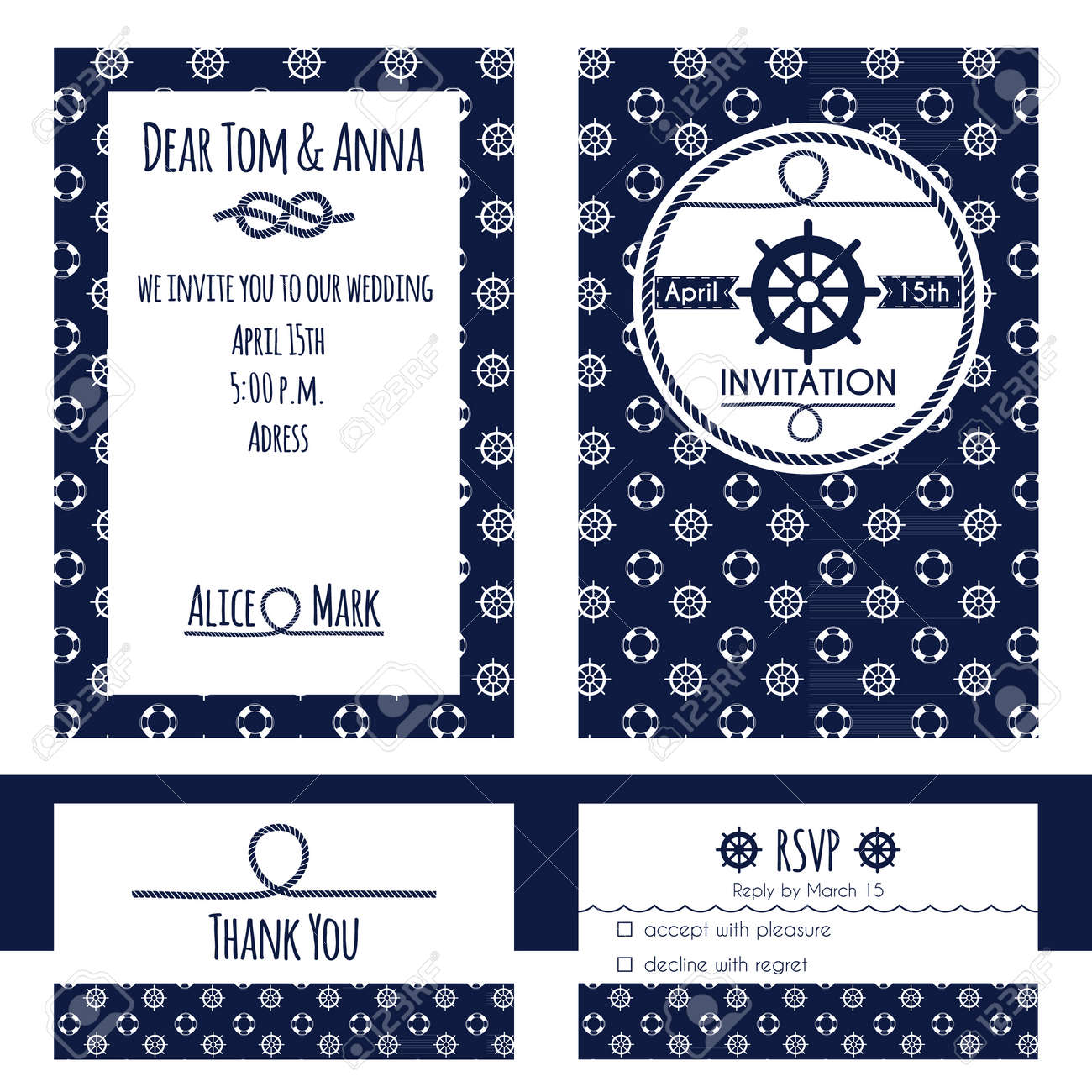 Nautical Wedding Invitation And Rsvp Card Template Lifebuoy