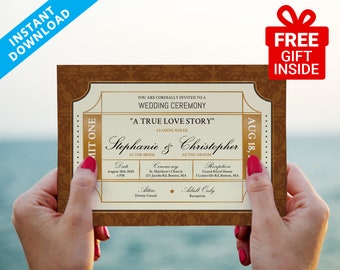 Pastel Retro Boarding Pass Wedding Invitation Template Stock